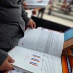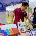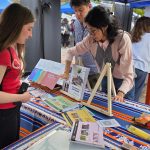 Nicolás Sosa, becario de la UE CISOR, en el espacio de exhibición de libros del instituto.