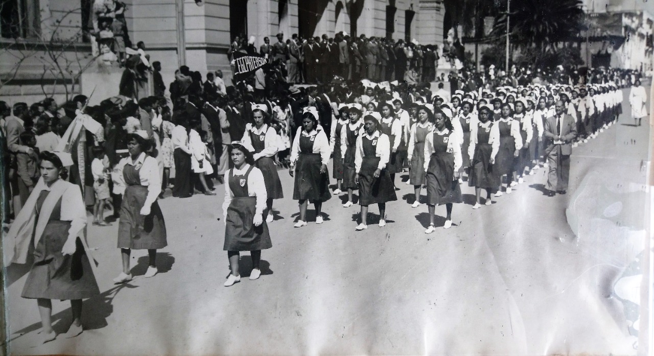 Fotografía: Alumnas de enfermería en la década de 1950, desfilando en la Casa de Gobierno de Jujuy