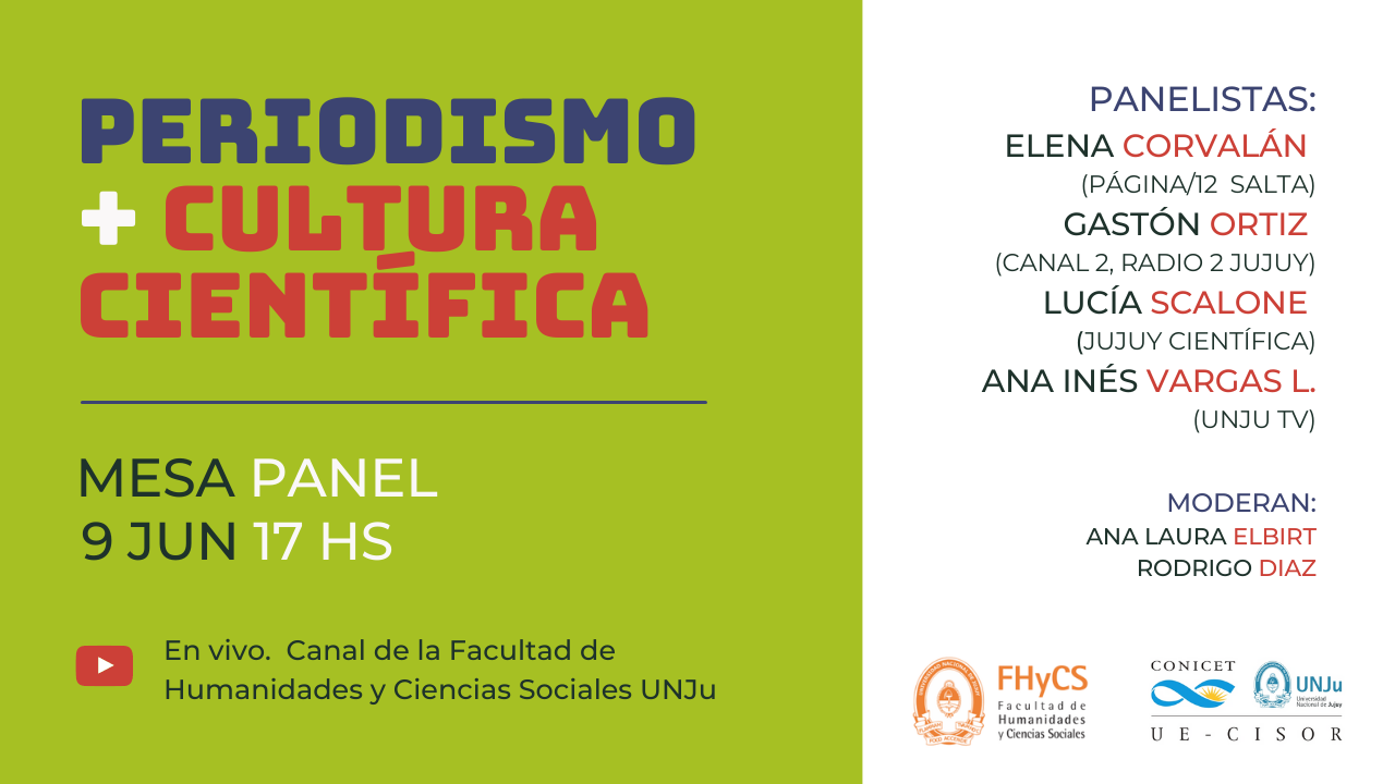La Unidad Ejecutora Ciencias Sociales Regionales y Humanidades (UE CISOR CONICET/UNJu) organiza la Mesa Panel “Periodismo y Cultura Científica” en adhesión al día de las y los periodistas en Argentina.
